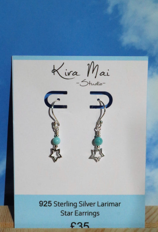 925 Sterling Silver Star Larimar Earrings
