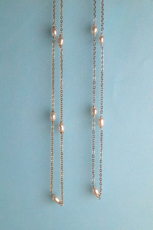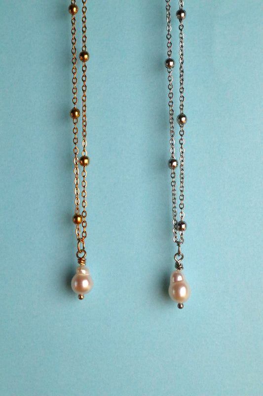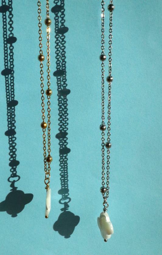 Stainless Steel Ball Chain Pearl Pendant Necklace